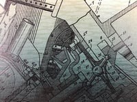 Printed from linoleum and polymer plates in an edition of 22 with five artist proofs. This listing is for an artist proof. Imagery derived from patent drawings of mechanisms designed to keep the water out.